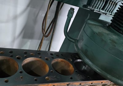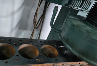 Reconstrução do bloco do motor para corrigir desgastes e restaurar a confiabilidade estrutural.